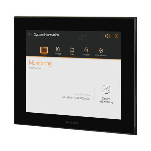 GP-A104-T9D8 Interface humano-máquina TFT Color LCD de 10.4" con resolución de 800X600px. Touch: Método de película resistiva analógica. Interfaz de comunicación: RS232C, RS422, CAN, Micro SD, USB HOST, USB Device, Ethernet. Tensión de alimentación: 24VDC.