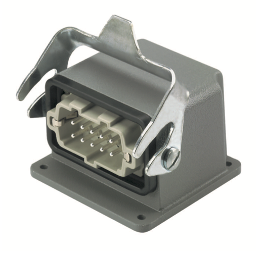 HDC HB 10 AWVL Base abierta 90° acodada para insertos de 10P 1Gancho Grupo 4 IP6