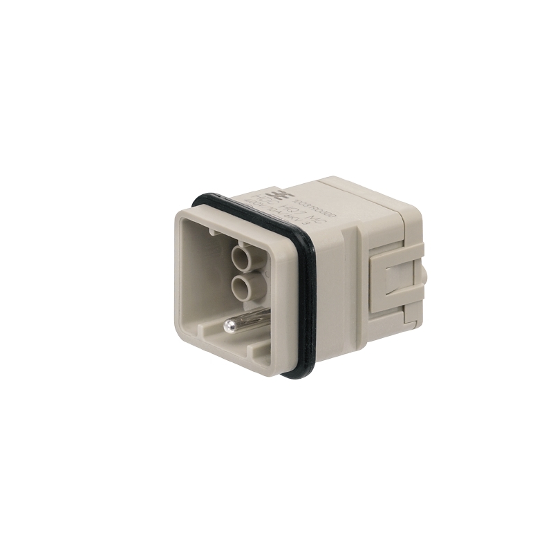 HDC HQ 7 MC RockStar. Serie HQ. Inserto macho para cableado híbrido. Numero de polos: 7P + PE. Corriente: 10A a una tensión de 400V. Grupo 1. Los contactos para crimpar se vender por separado. Conexión tipo crimpada. Rango de calibre del conductor: 0.14-2.5mm²/26-14AWG. Temperatura de operación: -40°C~125°C.