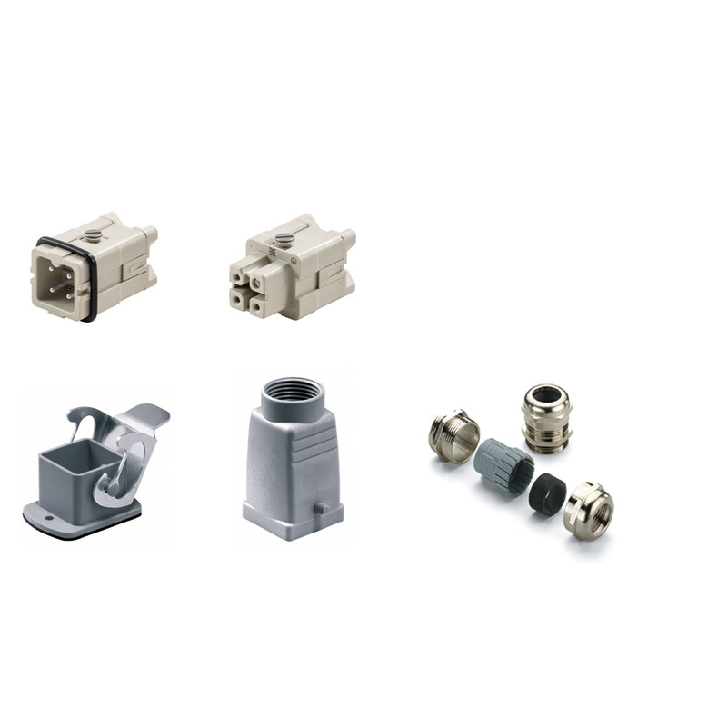 HDC-KIT-HA 03.300 RockStar. Serie HA. KIT de conector industrial. Numero de polos: 3P+PE. Corriente: 16A a una tensión de 400V. Grupo 1. Incluye: Conector hembra (1498200000), conector macho (1498100000), base abierta (1497600000), capota con salida superior (1652470000), glandula de latón(1569080000). Temperatura de operación: -40°C~125°C.
