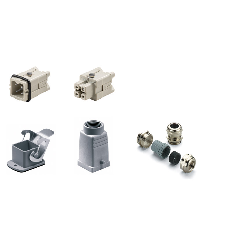 HDC-KIT-HA 03.300 M RockStar. Serie HA. KIT de conector industrial. Numero de polos: 3P+PE. Corriente: 16A a una tensión de 400V. Grupo 1. Incluye: Conector hembra (1498200000), conector macho (1498100000), base abierta (1497600000), capota con salida superior (1788820000), glandula de latón(1772220000). Temperatura de operación: -40°C~125°C.