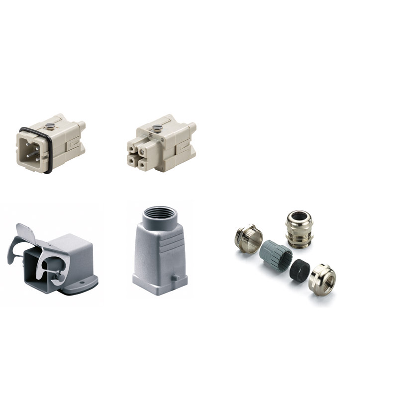 HDC-KIT-HA 03.302 M RockStar. Serie HA. KIT de conector industrial. Numero de polos: 3P+PE. Corriente: 16A a una tensión de 400V. Grupo 1. Incluye: Conector hembra (1498200000), conector macho (1498100000), base acodada (1497700000), capota con salida superior (1788820000), glandula de latón(1772220000). Temperatura de operación: -40°C~125°C.