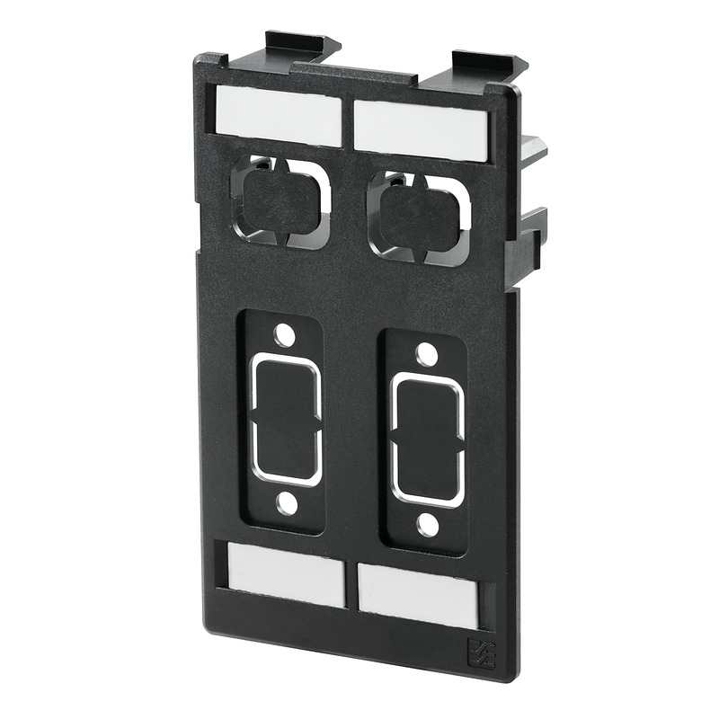 IE-FC-SP-2ST/2D9. Marco de montaje blindada FrontCom de policarbonato negro, para 2-Conector, datos, 2-Conector Sub-D 9 polos / VGA / HDMI. Grado de protección IP: IP20.