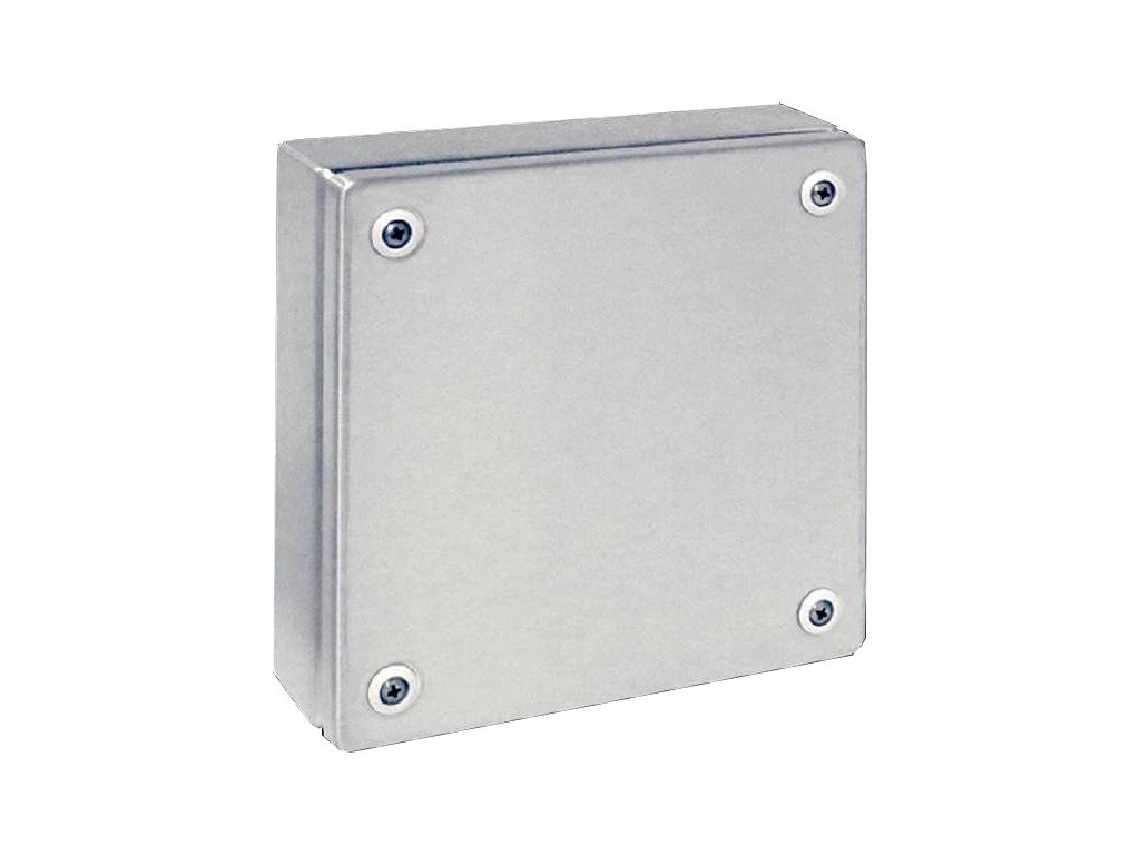 1562.000 KX Caja de bornes vacía con tapa atornillada, sin placa de montaje y entrada de cables, de acero inoxidable 1.4301 (AISI 304). Dimensiones: 200x200x80mm. Unidad de embalaje: caja con tapa, cierre rápido incluye casquillos de plástico. Grado de protección IP66, NEMA 4X. Aprobaciones: Bureau Veritas, DNV-GL, GOST, Lloyds Register of Shipping, RRR, UL + C-UL (listed).
