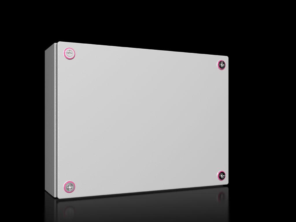 1508.000 KX Caja de bornes vacía con tapa atornillada, sin placa de montaje y entrada de cables, de chapa de acero. Dimensiones: 300x400x120mm. Unidad de embalaje: caja con tapa, cierre de aldabilla mini. Grado de protección IP66, NEMA 12. Aprobaciones: Bureau Veritas, DNV-GL, GOST, Lloyds Register of Shipping, UL + C-UL (listed).