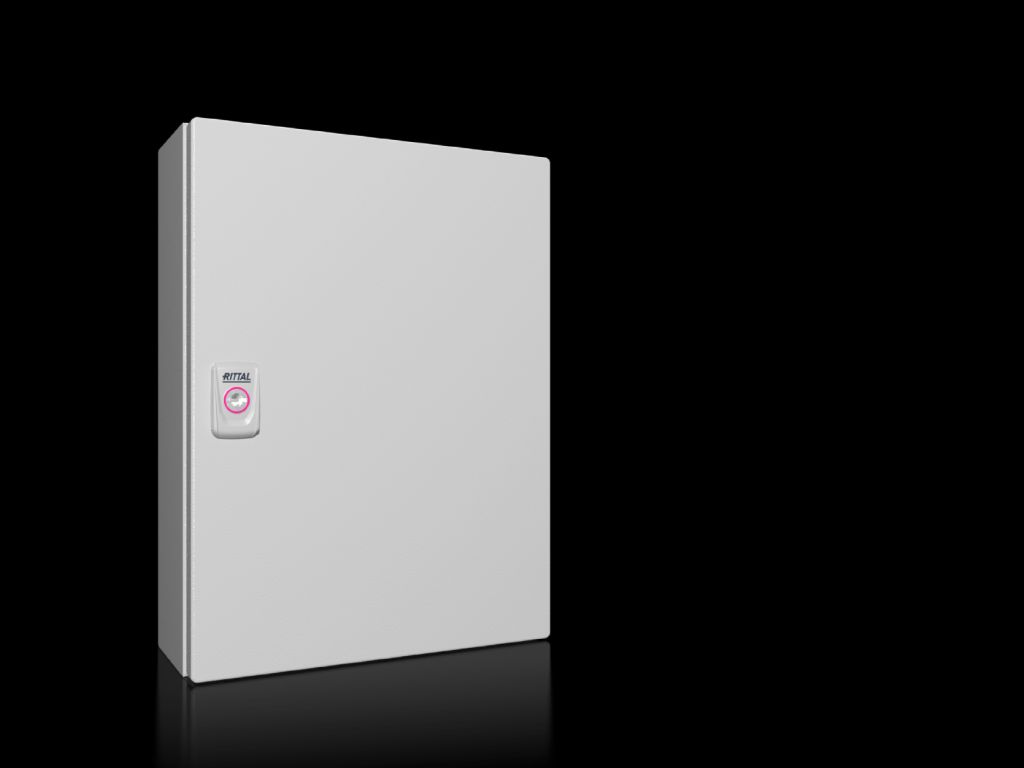 1556.000 KX E-Box Caja pequeña con puerta abisagrada de chapa de acero. Dimensiones: 400x300x120mm. Unidad de embalaje: caja con puerta, placa de montaje, cierre de aldabilla con bombín de doble paletón de 3 mm, bisagra de 180º. Grado de protección IP66, NEMA 12. Aprobaciones: Bureau Veritas, DNV-GL, GOST, Lloyds Register of Shipping, UL + C-UL (listed).
