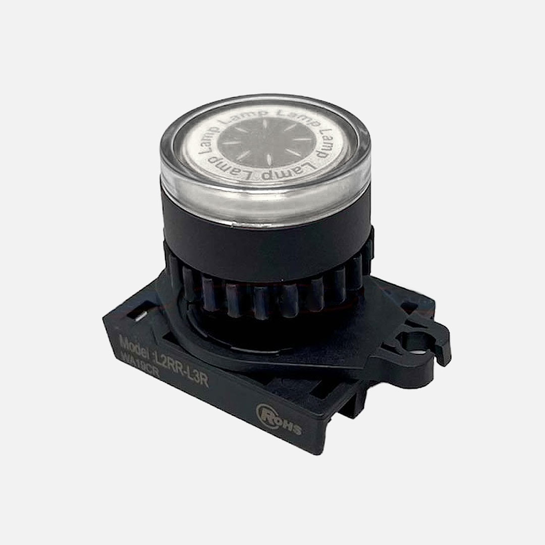 L2RR-L3W Indicador luminoso tipo luz piloto. Para orificio de montaje de 22mm de diámetro. Diseño saliente redondo plano. Color blanco. Unidad básica (Cabezal con adaptador), los módulos LED se venden por separado. Grado de protección IP52.