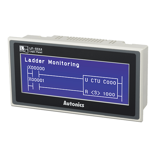 LP-S044-S1D0-C5T-A PLC + Interfaz humano-máquina (HMI) STN LCD de 4.4" con resolución de 240X80px. Touch: Método de película resistiva analógica. Interfaz de comunicación: RS232C, RS422. Configuración I/O: 16 entradas digitales, 16 salidas digitales. Tipo de conexión de I/O: Conector del bloque de terminales. Tensión de alimentación: 24VDC.