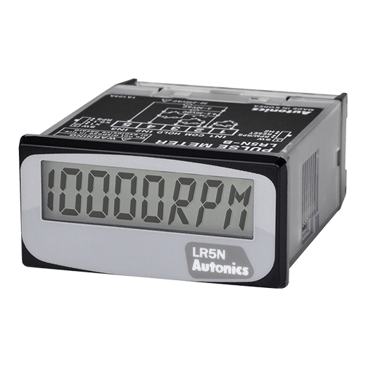 LR5N-B Tacometro LCD compacto. 16 modos de operación: Frecuencia y revoluciones (RPM,RPS). Display de 4½ dígitos con 7 segmentos LED. Tamaño DIN 48WX24Hmm, con profundidad de 54Dmm. Señal de entrada tipo: PNP/NPN. Tensión de alimentación: Batería integra