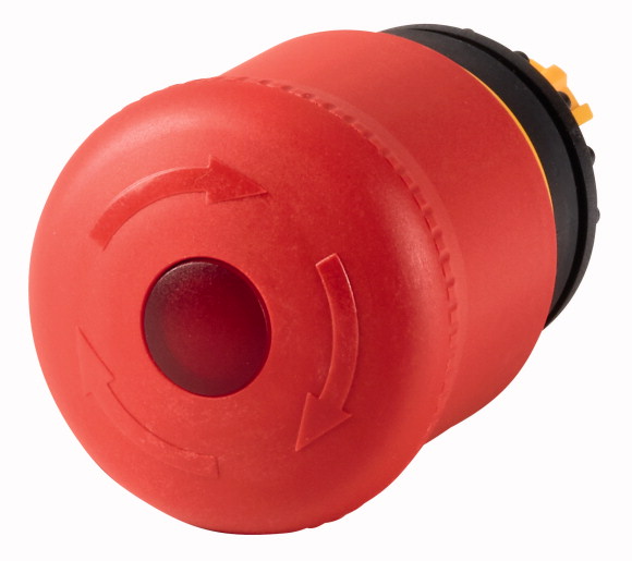 M22-PVLT RMQ-Titan Botón paro de emergenciaIluminado . Diseño tipo hongo con 38mm de diámetro de cabezal. Cabezal tipo hongo color rojo y base amarilla. Girar para liberar. Unidad básica (requiere adaptador y módulos de contacto). Grado de protección: IP66, IP69.