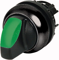 M22S-WLK-G RMQ-Titan Selector 2 posiciones tipo palanca. Iluminado color verde. Para orificio de montaje de 22mm de diámetro. Accionamiento momentáneo (modificable a mantenido retirando M22-XC-Y) con ángulo de movimiento a 40°. Bisel color negro. Unidad básica (requiere adaptador, módulos de contacto y modulo luminoso LED). Grado de protección IP66.