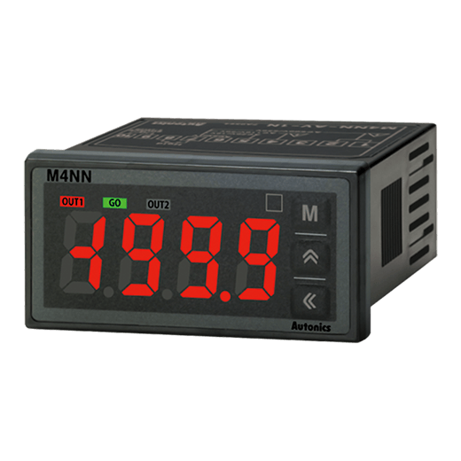 M4NN-DA-11 Medidor digital compacto para panel con opciones de entrada para drivers. Amperímetro DC. Display de 4 dígitos con LED 7 segmentos. Tamaño DIN 48WX24Hmm, con profundidad de 56.3Dmm. Corriente DC. Máxima señal de entrada: 5A. Tensión de alimentación: 5-24VCC. Salida de control: NPN .