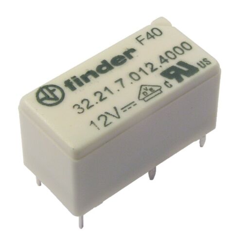 32.21.7.012.4000 Relevador / Mini-relé para circuito impreso. Tensión de circuito de mando 12VCD. Un contacto conmutado 1CO (1NA1NC), material de los contactos AgSnO2 (Plata Oxido de estaño), con capacidad de carga de 6A a 250VCA, 5 pines tipo PCB, reticulado 3.5mm. Lavable (RT III). Aprobaciones: CSA, EAC, UL