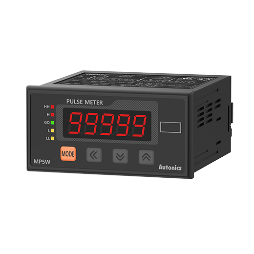 MP5W-44 High performance, Digital panel meter. 16 operation modes. Input method: PNP/NPN. Size: 96WX48Hmm and 100Dmm. Power supply: 100-240V60Hz. Output: Indicator+ PV Transmission current (4-20mA).