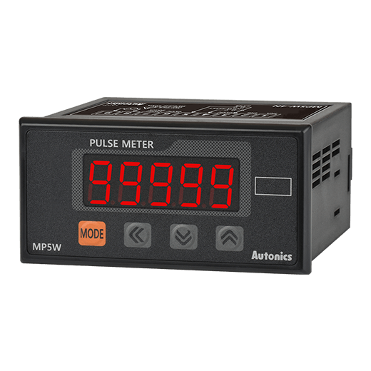 MP5W-4N Medidor de pulsos digital de alto rendimiento para panel. 16 modos de operación: Frecuencia, Revoluciones, Velocidad, Ciclo, Tiempo, Radio, Densidad, Error, Medición de longitud, Interval0, Acumulación, Adición/Sustracción, etc.. Display de 5 dígitos con 7 segmentos LED. Tamaño DIN 96WX48Hmm, con profundidad de 100Dmm. Señal de entrada tipo: PNP/NPN. Tensión de alimentación: 100-240VAC. Salida de control: Indicador.