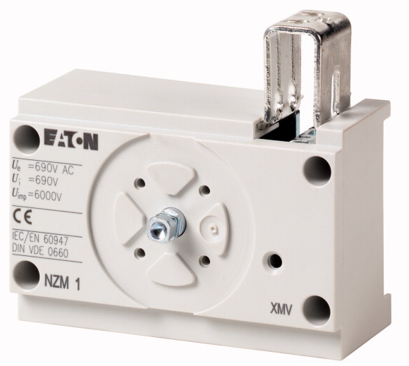 NZM1-XMV Interlock mecánico para manija rotatoria en puerta. Indicado para 2 más ITM del mismo o diferente tamaño con operación opuesta, montaje adyacente, requiere cable Bowden. Indicado para usarse con: NZM1, N1, PN1. Tamaño 1.