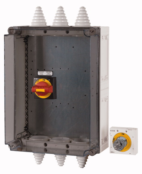 NZM2-XCI45-TVDVR Caja aislada de plástico con manija rotatoria, indicado para usarse en paro de emergencia. Corriente nominal: 250A. Dimensiones: 500HX375WX225Dmm. Para usarse con NZM2, N2, PN2. Tamaño 2. Grado de protección: IP65.