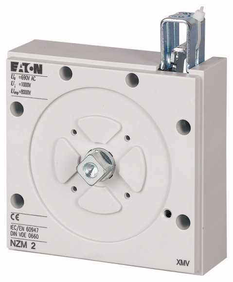 NZM2-XMV Interlock mecánico para manija rotatoria en puerta. Indicado para 2 más ITM del mismo o diferente tamaño con operación opuesta, montaje adyacente, requiere cable Bowden. Indicado para usarse con: NZM2, N2, PN2. Tamaño 2.