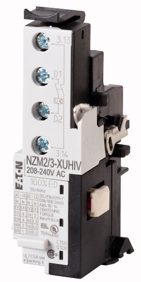NZM2/3-XUHIV380-440AC Disparador de mínima Tensión, con 2NA. Tensión de control: 380-440VCA. Indicado para usarse con: NZM2/3(-4), N(S)2/3(-4). Tamaño 2/3.