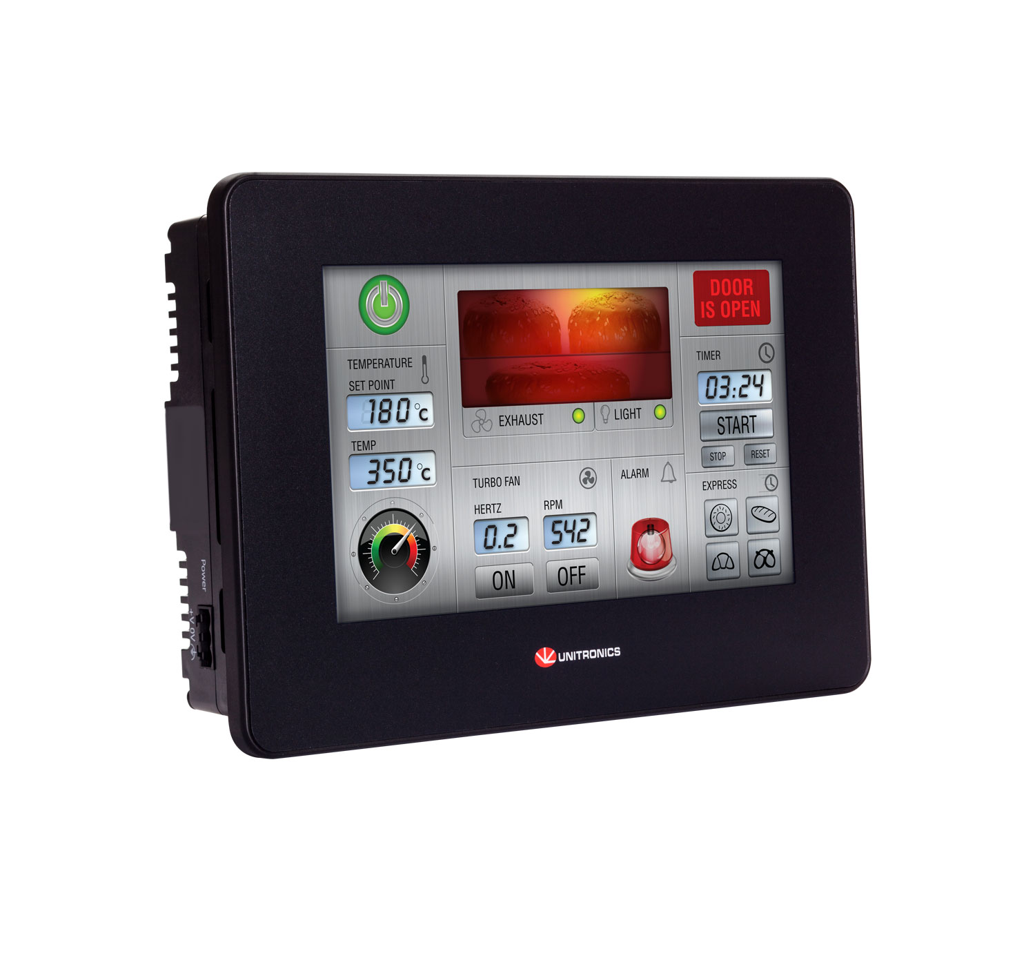 UniStream® Modular HMI (interfaz hombre-máquina). Pantalla táctil (Resistivo, analógico) a color 7” LCD TFT (65.536 colores, resolución de 16 bits). Resolución: 800x480 píxeles (WVGA). Teclado virtual. Tensión de alimentación: 12/24VCD. Características adicionales: Pantalla táctil en color de alta calidad. UniStream de 10.4 pulgadas también se ofrece con pantalla multitáctil. Pantalla multilingüe. Pantallas de alarmas incorporadas. Soporte multimedia: video, audio y visualizador de PDF’s. Protección con contraseña de varios niveles: rápida y sencilla. PLC. Identificador de proceso (PID) de ajuste automático, hasta 64 lazos independientes. Registro de recetas y datos por medio de tablas de datos y muestreo. Tarjeta MicroSD: registro, respaldo, clonación y mucho más. Bloques y estructuras de funciones..