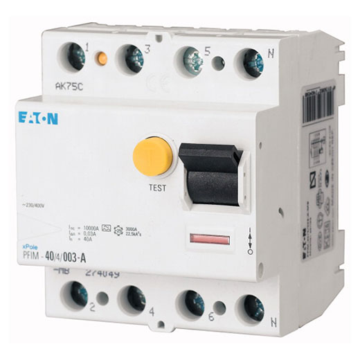 PFIM-63/4/03-MW Xpole Interruptor diferencial / Interruptor de falla a tierra (RCCB). Tipo AC. Inmunizado a desconexiones intempestivas, transitorios 250 A, tipo AC. 4 polo(s). Corriente nominal: 63A. Corriente de falla: 300mA. Resistencia nominal al cortocircuito: 10kA. Tensión nominal: 230/400VCA. Montaje en riel DIN IEC/EN60715. Grado de protección: IP20.