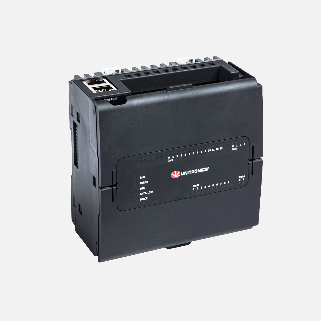 UniStream®PLC Controlador potente y sólido con: HMI (interfaz hombre-máquina) virtual. Se puede ampliar hasta 2048 entradas y salidas. Cree sus aplicaciones de PLC (controlador lógico programable) y HMI (interfaz hombre-máquina) mediante el mismo software de programación.. Memoria de aplicación: 8 MB. Cuenta con entradas: 14 entradas digitales PNP o NPN (posibilidad de configurar dos entradas de contador rápido HSC de 90 kHz a 32 bits), 2 entradas analógicas de 14 bits (0-10V, 0-20mA, 4-20mA) y 2 entradas de temperatura aisladas (Termopar, PT100/NI100/NI120/PT1000/NI1000); salidas: 8 salidas digitales tipo relé y 2 salidas analógicas (0-10V, ± 10V, 0/4-20mA). Tensión de alimentación: 24VCD. Características adicionales: Ampliación local: hasta 2.048 entradas y salidas. Ampliación remota: por medio de entradas y salidas remotas de UniStream. Identificador de procesos (PID) de ajuste automático, hasta 64 lazos independientes. Registro de recetas y datos por medio de tablas de datos y muestreo. Tarjeta MicroSD: registro, respaldo, clonación y mucho más. Bloques y estructuras de funciones.