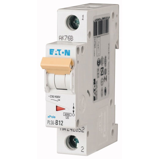 PLS6-B12-MW Xpole Interruptor automático termomagnético (disyuntor MCB). 1 polo(s). Corriente nominal: 12A. Curva de disparo: tipo B. Capacidad interruptiva de acuerdo a IEC/EN 60898-1: 6kA, IEC 60947-2: 10kA. Tensión nominal: 230/400VCA y 48VCD por polo. Montaje en riel DIN IEC/EN60715. Grado de protección: IP20.