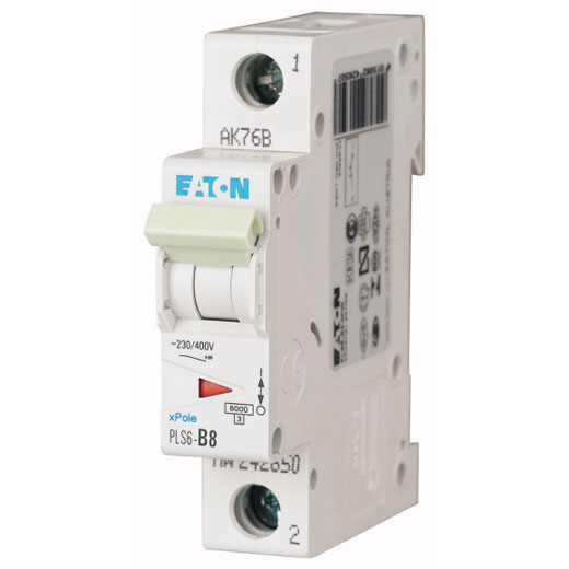 PLS6-B8-MW Xpole Interruptor automático termomagnético (disyuntor MCB). 1 polo(s). Corriente nominal: 8A. Curva de disparo: tipo B. Capacidad interruptiva de acuerdo a IEC/EN 60898-1: 6kA, IEC 60947-2: 10kA. Tensión nominal: 230/400VCA y 48VCD por polo. Montaje en riel DIN IEC/EN60715. Grado de protección: IP20.