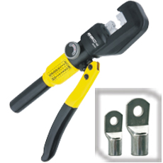 Ponchadora hidráulica de 8 Ton con mordaza abierta y dados intercambiables-. Tipo de prensado /perfil: Conexión crimpada con engastes. Rango de sección nominal admisible: 4-70mm²(12-2/0AWG). Estuche plástico / Cabeza giratoria.