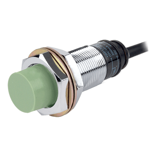 PR18-8DN2. Sensor de proximidad inductivo con diseño cilíndrico que puede detectar objetos a 8mm de distancia. El diámetro de su cabezal es de 18mm y permite una instalación de tipo no rasante, así como conexión a través de un cable PVC de 2m. Se alimenta a una tensión de 12-24VCD a 3 hilos y una salida tipo NPN contacto normalmente cerrado. Su frecuencia de respuesta es de 350Hz y tiene un LED Rojo que indica su estado. Está fabricado completamente de latón niquelado y es resistente al polvo y al agua (IP67). Para más información revisar la ficha técnica.