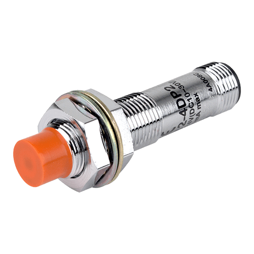 PRCM12-4DP2. Sensor de proximidad inductivo con diseño cilíndrico que puede detectar objetos a 4mm de distancia. El diámetro de su cabezal es de 12mm y permite una instalación de tipo no rasante, así como conexión a través de un conector M12. Se alimenta a una tensión de 12-24VCD a 3 hilos y una salida tipo PNP contacto normalmente cerrado. Su frecuencia de respuesta es de 500Hz y tiene un LED Rojo que indica su estado. Está fabricado completamente de latón niquelado y es resistente al polvo y al agua (IP67). Para más información revisar la ficha técnica.