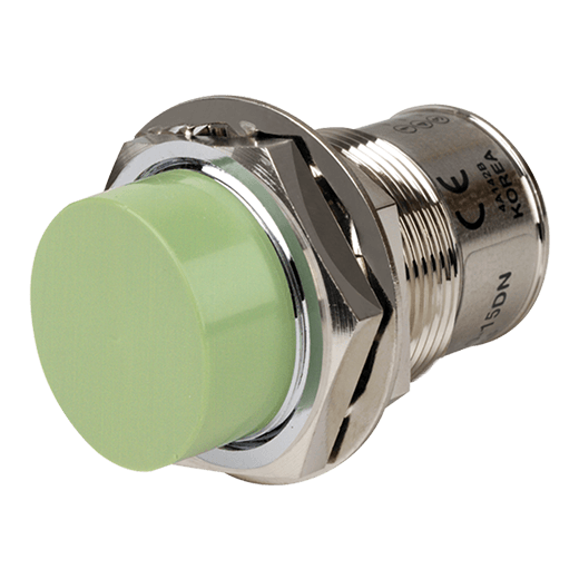 PRCM30-15DN. Sensor de proximidad inductivo con diseño cilíndrico que puede detectar objetos a 15mm de distancia. El diámetro de su cabezal es de 30mm y permite una instalación de tipo no rasante, así como conexión a través de un conector M12. Se alimenta a una tensión de 12-24VCD a 3 hilos y una salida tipo NPN contacto normalmente abierto. Su frecuencia de respuesta es de 200HZ y tiene un LED Rojo que indica su estado. Está fabricado completamente de latón niquelado y es resistente al polvo y al agua (IP67). Para más información revisar la ficha técnica.