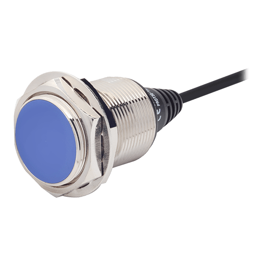 PRD30-15DP. Sensor de proximidad inductivo de larga distancia de detección con diseño cilíndrico que puede detectar objetos a 15mm de distancia. El diámetro de su cabezal es de 30mm y permite una instalación de tipo rasante, así como conexión a través de un cable PVC de 2m. Se alimenta a una tensión de 12-24VCD a 3 hilos y una salida tipo PNP contacto normalmente abierto. Su frecuencia de respuesta es de 100Hz y tiene un LED Rojo que indica su estado. Está fabricado de latón niquelado y es resistente al polvo y al agua (IP67). Para más información revisar la ficha técnica.