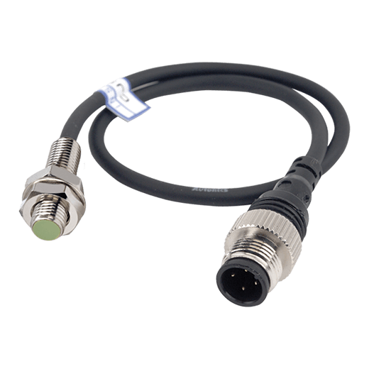 PRW08-1.5DN Sensor de proximidad inductivo cilíndrico tipo cable conector. Diámetro de cabezal: 8mm. Distancia de sensado: 1.5mm. Instalación tipo Rasante. Tensión de alimentación: 3 hilos a 12-24VCD. Salida de control: NPN contacto normalmente abierto. Frecuencia de respuesta: 1.5kHz. Material: latón niquelado. Con indicador LED Rojo y cable PVC de 300mm con conector M12. Grado de protección: IP67.