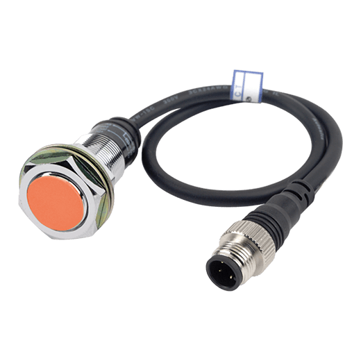 PRW18-5DP Sensor de proximidad inductivo cilíndrico tipo cable conector. Diámetro de cabezal: 18mm. Distancia de sensado: 5mm. Instalación tipo Rasante. Tensión de alimentación: 3 hilos a 12-24VCD. Salida de control: PNP contacto normalmente abierto. Frecuencia de respuesta: 500Hz. Material: latón niquelado. Con indicador LED Rojo y cable PVC de 300mm con conector M12. Grado de protección: IP67.