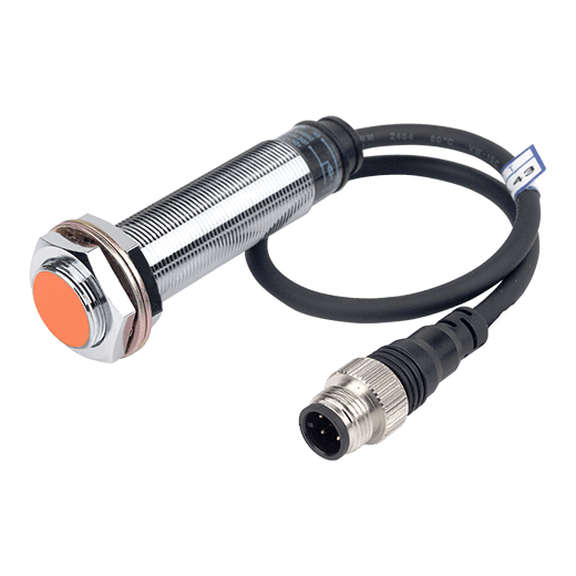 PRWL18-5DP. Sensor de proximidad inductivo de cuerpo largo con diseño cilíndrico que puede detectar objetos a 5mm de distancia. El diámetro de su cabezal es de 18mm y permite una instalación de tipo rasante, así como conexión a través de un cable PVC de 300mm con conector M12. Se alimenta a una tensión de 12-24VCD a 3 hilos y una salida tipo PNP contacto normalmente abierto. Su frecuencia de respuesta es de 500Hz y tiene un LED Rojo que indica su estado. Está fabricado de latón niquelado y es resistente al polvo y al agua (IP67). Para más información revisar la ficha técnica.