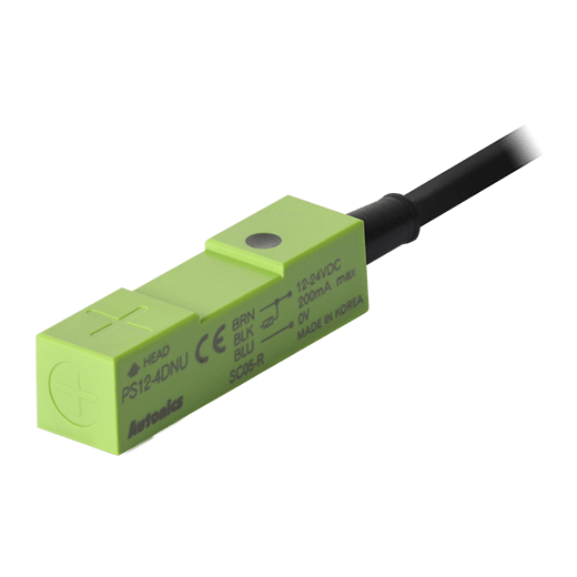 PS12-4DNU. Sensor de proximidad inductivo de detección superior con diseño rectangular que puede detectar objetos a 4mm de distancia. Las dimensiones del lado de detección son 12x12mm y permite la conexión a través de un cable PVC de 2m. Se alimenta a una tensión de 12-24VCD a 3 hilos y una salida tipo NPN contacto normalmente abierto. Su frecuencia de respuesta es de 500Hz y tiene un LED Rojo que indica su estado. Está fabricado de ABS resistente al calor y es resistente al polvo y al agua (IP67). Para más información revisar la ficha técnica.
