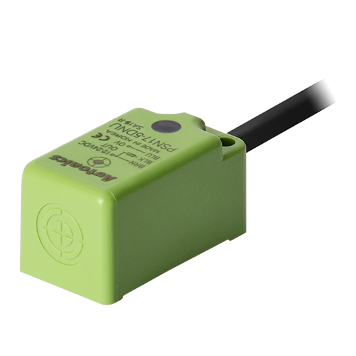 PSN17-5DNU. Sensor de proximidad inductivo de detección frontal con diseño rectangular que puede detectar objetos a 5mm de distancia. Las dimensiones del lado de detección son 17x17mm y permite la conexión a través de un cable PVC de 2m. Se alimenta a una tensión de 12-24VCD a 3 hilos y una salida tipo NPN contacto normalmente abierto. Su frecuencia de respuesta es de 700Hz y tiene un LED Rojo que indica su estado. Está fabricado de ABS resistente al calor y es resistente al polvo y al agua (IP67). Para más información revisar la ficha técnica.