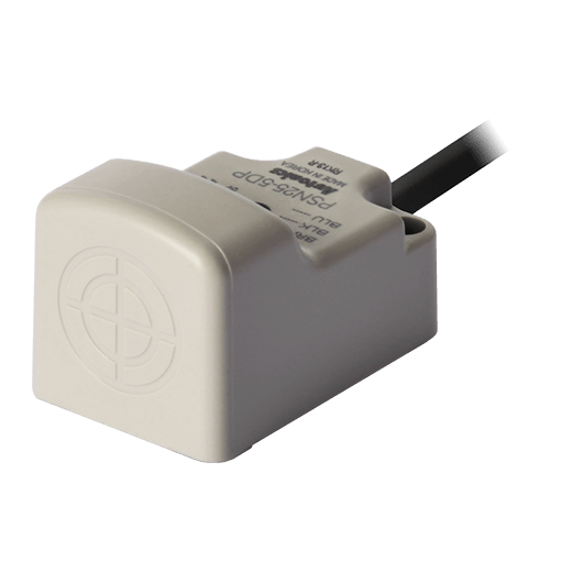 PSN25-5DP. Sensor de proximidad inductivo de detección frontal con diseño rectangular que puede detectar objetos a 5mm de distancia. Las dimensiones del lado de detección son 25x25mm y permite la conexión a través de un cable PVC de 2m. Se alimenta a una tensión de 12-24VCD a 3 hilos y una salida tipo PNP contacto normalmente abierto. Su frecuencia de respuesta es de 300Hz y tiene un LED Rojo que indica su estado. Está fabricado de ABS resistente al calor y es resistente al polvo y al agua (IP67). Para más información revisar la ficha técnica.