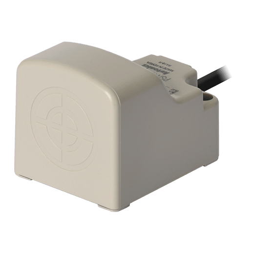 PSN40-20DP. Sensor de proximidad inductivo de detección frontal con diseño rectangular que puede detectar objetos a 20mm de distancia. Las dimensiones del lado de detección son 40x40mm y permite la conexión a través de un cable PVC de 2m. Se alimenta a una tensión de 12-24VCD a 3 hilos y una salida tipo PNP contacto normalmente abierto. Su frecuencia de respuesta es de 100Hz y tiene un LED Rojo que indica su estado. Está fabricado de ABS resistente al calor y es resistente al polvo y al agua (IP67). Para más información revisar la ficha técnica.