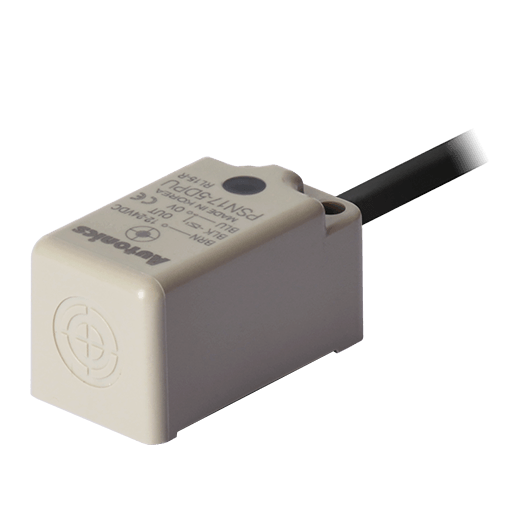 PSNT17-5DC. Sensor de proximidad inductivo de detección frontal con diseño rectangular que puede detectar objetos a 5mm de distancia. Las dimensiones del lado de detección son 17x17mm y permite la conexión a través de un cable PVC de 2m. Se alimenta a una tensión de 12-24VCD a 2 hilos y una salida tipo contacto normalmente cerrado. Su frecuencia de respuesta es de 700Hz y tiene un LED Rojo que indica su estado. Está fabricado de ABS resistente al calor y es resistente al polvo y al agua (IP67). Para más información revisar la ficha técnica.