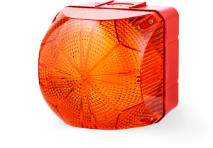QDM Indicador luminoso LED cuadrado 132mm, luz fija/intermitente. Intensidad luminosa de 78cd. Calota color: ámbar. Tensión de alimentación: 24-48VCA/CD. Temperatura de operación: -30 °C ~+60 °C. Material: Policarbonato. Grado de protección: IP66, UL 4/4X/13.