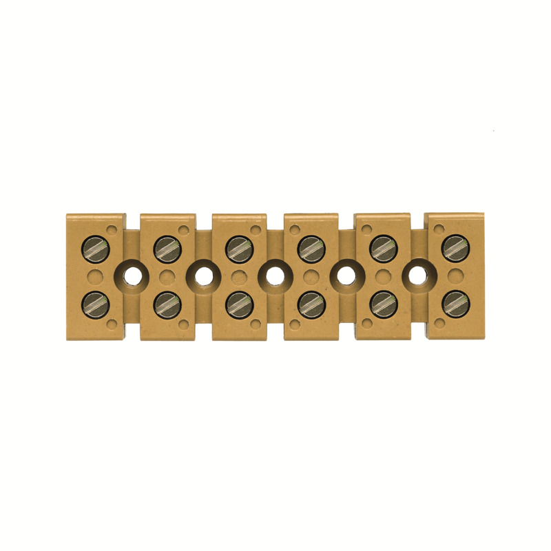 Regletas de conexión de 6 polos. Capacidad de conexión de 6mm² (22-10AWG). Indicado para una carga de 41AA a 690VCA. Conexión atornillada. Hecho de KrG . Color Ocre .