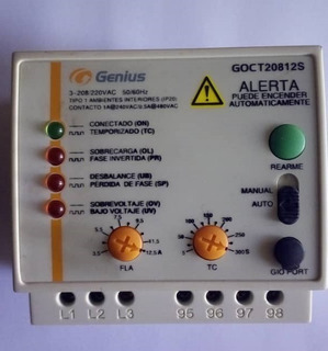 Relevador trifásico de protección integral para motores. Protección contra fallas de fase y sobrecargas. Disparo térmico 10. Tensión: 208/220V. Corriente a carga plena (FLA) de 3.5-12.5A.