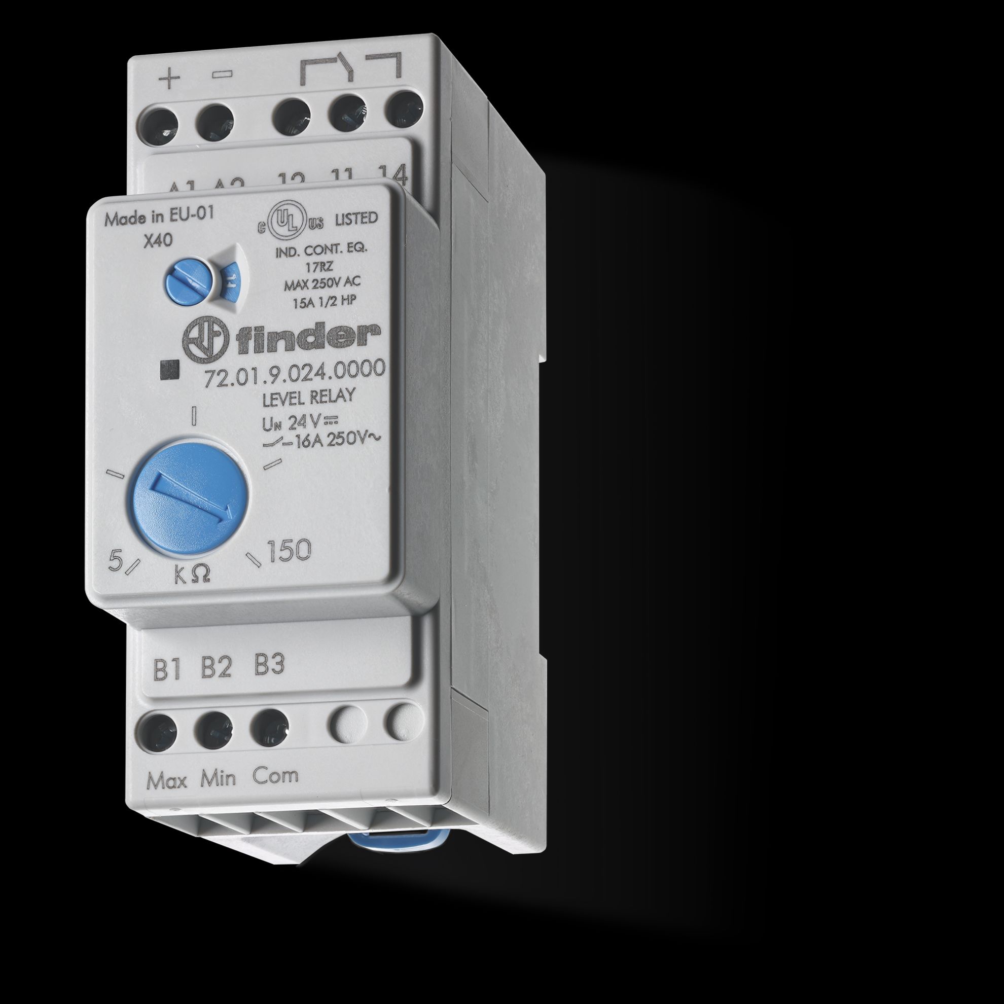Relé de control de nivel con sensibilidad ajustable 5-150kO 230-240VAC 1NA1NC 16