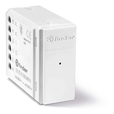 13.72.8.230.B000 Relé multifunción electrónico con Bluetooth YESLY BLE Blanco. Funciones: 21 funciones selectivas: telerruptor, temporizados (1s - 24h), control de toldos y persianas eléctricas. protocolo de transmisión bluetooth low energy (ble). conexión con criptografía a 128 bites. Tensión de mando de 110-230VCA. Equipado con contactos 2NA. Material de los contactos: plata niquel (AgNi). Indicado para una corriente nominal de 6A a tensión de 230VCA. Dimensiones: 40Hx22.5Wx45.5Dmm. Montaje en caja de derivación. Temperatura de operación -10°C~50°C. Aprobaciones: CE, UKCA, EAC. Protección IP20.
