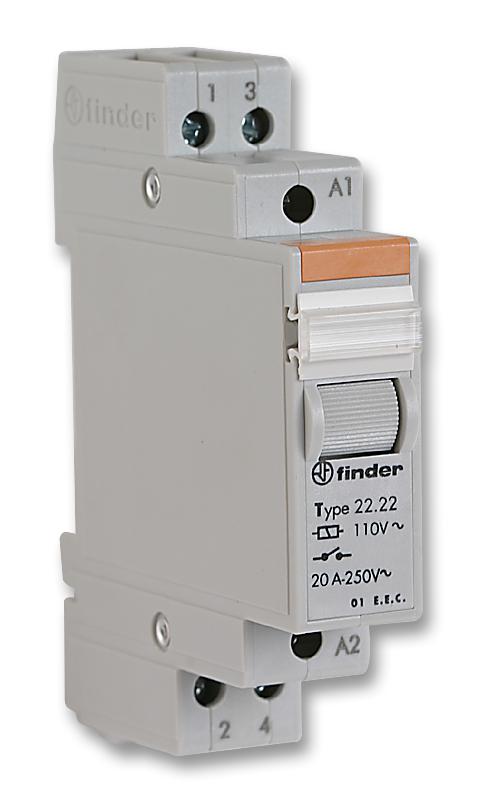 22.22.8.110.4000 Relevador/ Relé auxiliar modular. Tensión de mando nominal de 110VCA. Contactos de plata oxido de estaño (AgSn02) con configuración 2NA. Indicado para corriente nominal de 20A a una tensión de 250VVCA. Montaje en carril DIN 35mm. Dimensiones: 84Hx17.4Wx58.4Dmm. Temperatura de operación de -40°C~40°C. Protección IP20.