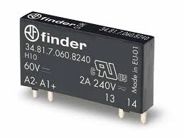 34.81.7.060.8240 Relevador / Relé de estado sólido (SSR) ultra delgado para circuito impreso. Input 60VCD. Un contacto abierto 1NA con capacidad de carga de 2A a 240VCA. 4 pines tipo aguja reticulado 5mm. Aprobaciones: CE, UKCA, UL