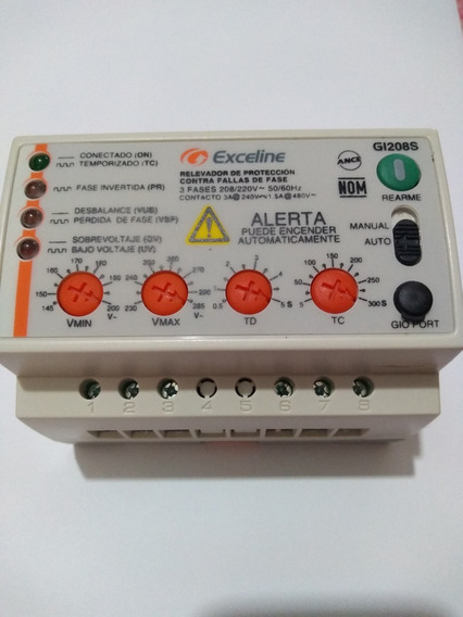 Relevador trifásico de protección contra fallas de fase. Ajuste con perillas y selector. Tensión: 208/220V. Corriente: 3A.
