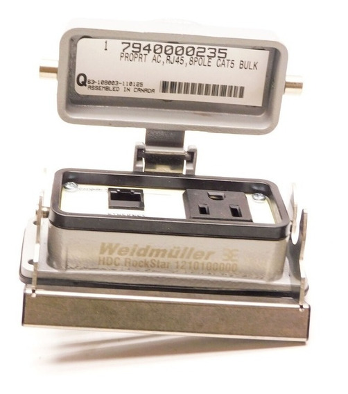 RJ45(CAT5)+AC Interface Serie HDC. Puerto de alimentación 120V 5A con conector RJ45 (CAT5). Tamaño 6. Con carcasa metalica.